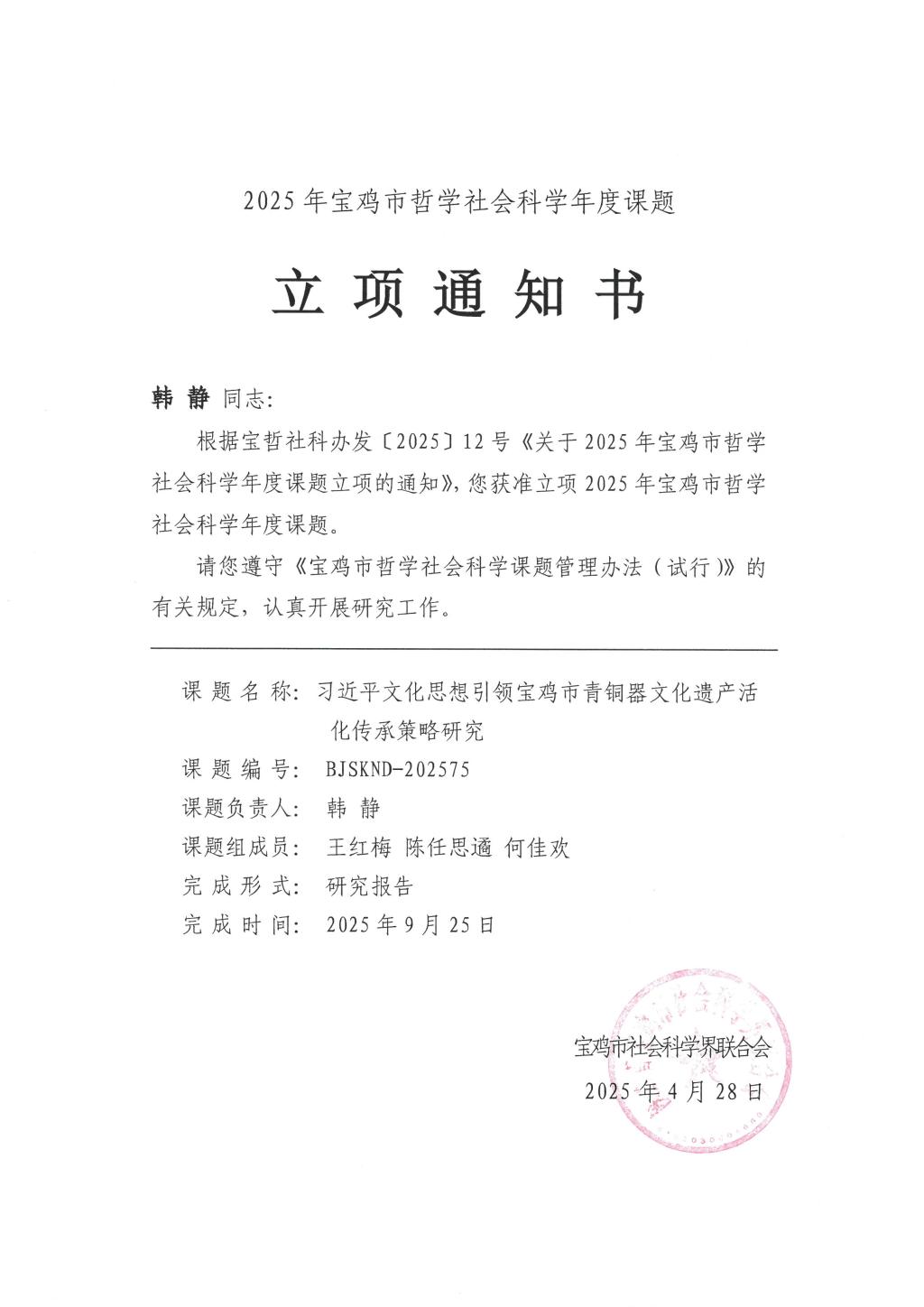 11月29日,教育部社会科学司发布《关于2025年度教育部人文社会科学研究一般项目立项的通知》,马克思主义学院张红艳副教授主持的《张载经学文献辑考与研究》获准立项(项目编号:25YJA770014)。