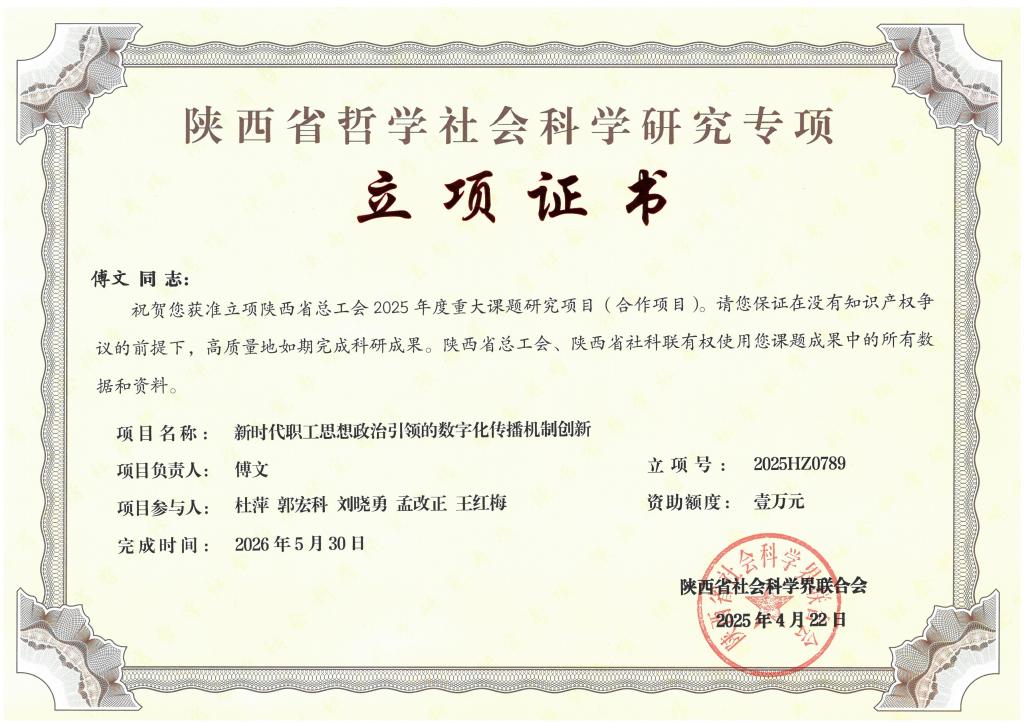 2025年12月30日,中共陕西省委宣传部公布《陕西省第三批重点马克思主义学院和重点马克思主义学院培育单位入选名单》。经省委宣传部、省委教育工作委员会组织专家综合评估、现场答辩、实地考察、综合评议等相关工作程序,我校马克思主义学院以综合考核第一名的成绩入选陕西省第三批重点马克思主义学院。