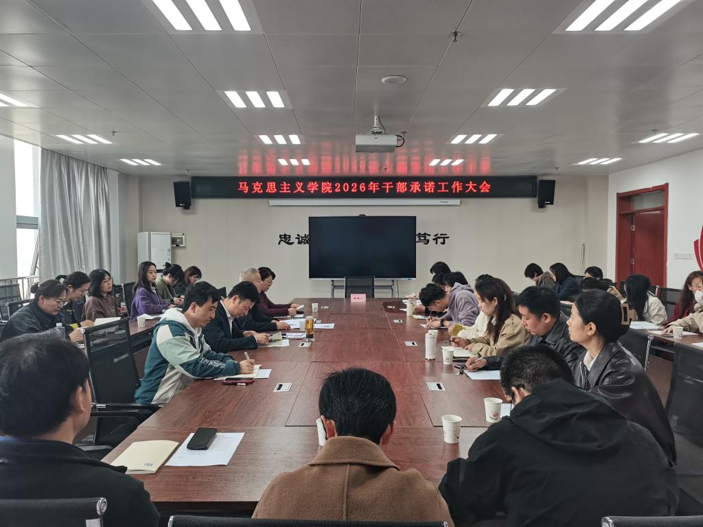 4月8日,马克思主义学院在高新校区博文楼1201会议室召开2026年干部承诺工作大会。学院领导班子及全体教师参会,会议由学院党总支书记赵智劳主持。