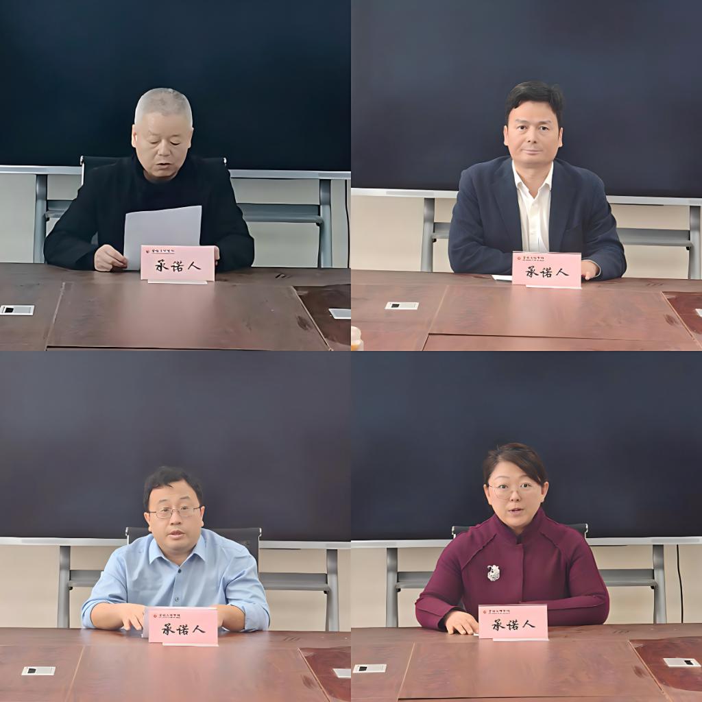 会上,学院领导班子成员紧扣岗位职责、模范引领、工作作风三个维度作出公开承诺,重点汇报了学院在党建引领、教学服务、科研培育等方面的工作进展与成果,明确了本年度工作履职的具体方向。