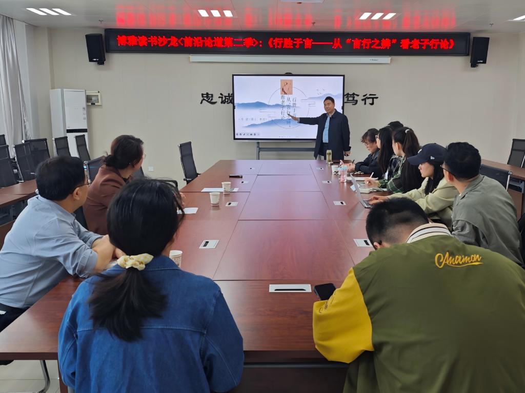 4月16日上午,马克思主义学院在高新校区博文楼1201会议室举办博雅读书沙龙[前沿论道第二季]学术报告会,特邀老子研究专家李健教授介绍自己多年研读《道德经》的经验和创见,题目为:《行胜于言——从“言行之辨”看老子行论》。报告会由学院副院长张丽主持。