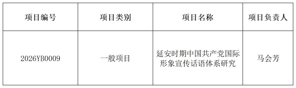 近日,陕西省社会科学界联合会公布了“2026年度陕西省哲学社会科学研究专项一般项目、青年项目”立项结果,我院马会芳副教授主持的《延安时期中国共产党国际形象宣传话语体系研究》获批2026年度陕西省哲学社会科学研究专项一般项目,项目资助金额1万元。