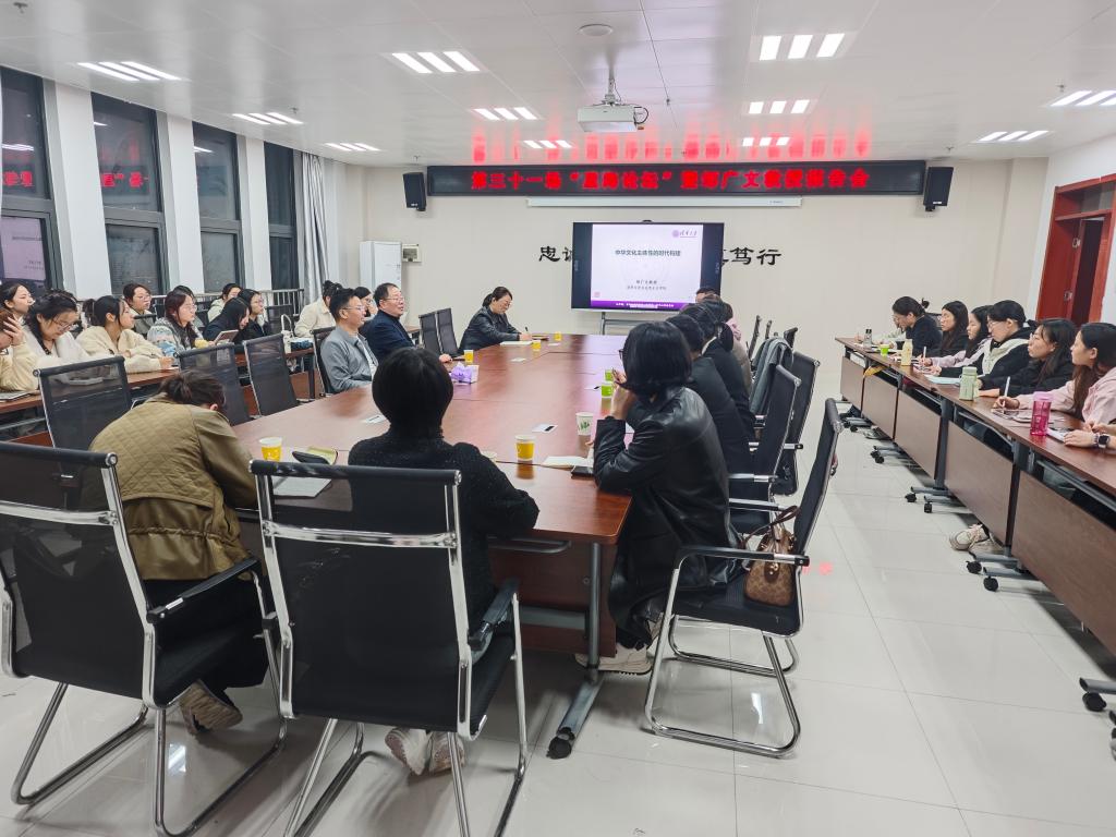 10月19日,马克思主义学院在高新校区博文楼1201会议室举办第三十一场“星海论坛”学术报告会,邀请中宣部文化名家暨“四个一批”人才、中国马克思主义哲学史学会文化哲学研究会副会长、清华大学博士生导师邹广文教授为我校师生作题为《中华文化主体性的时代构建》的学术报告。报告会由马克思主义学院副院长张丽主持。